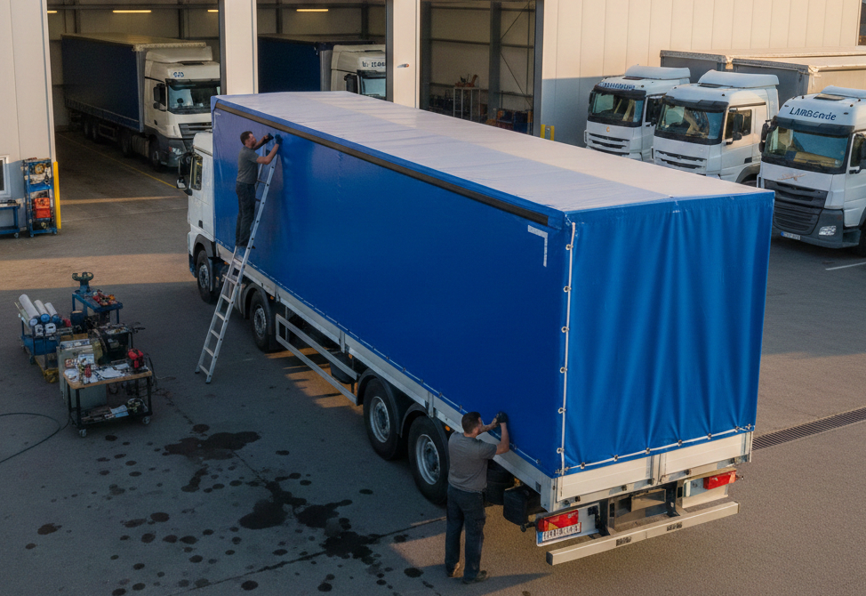 Conception et réparation de bâches de camions sur mesure : robustesse et finitions professionnelles pour vos poids lourds.